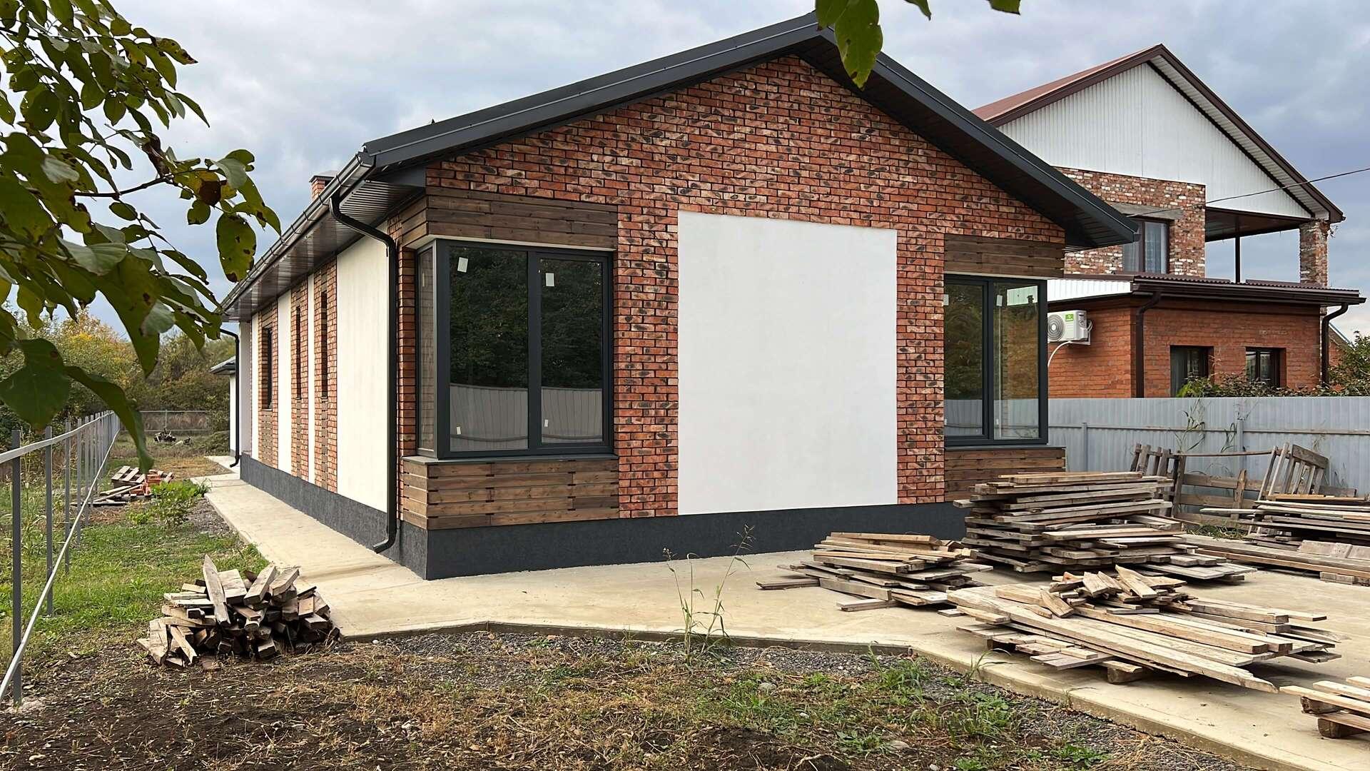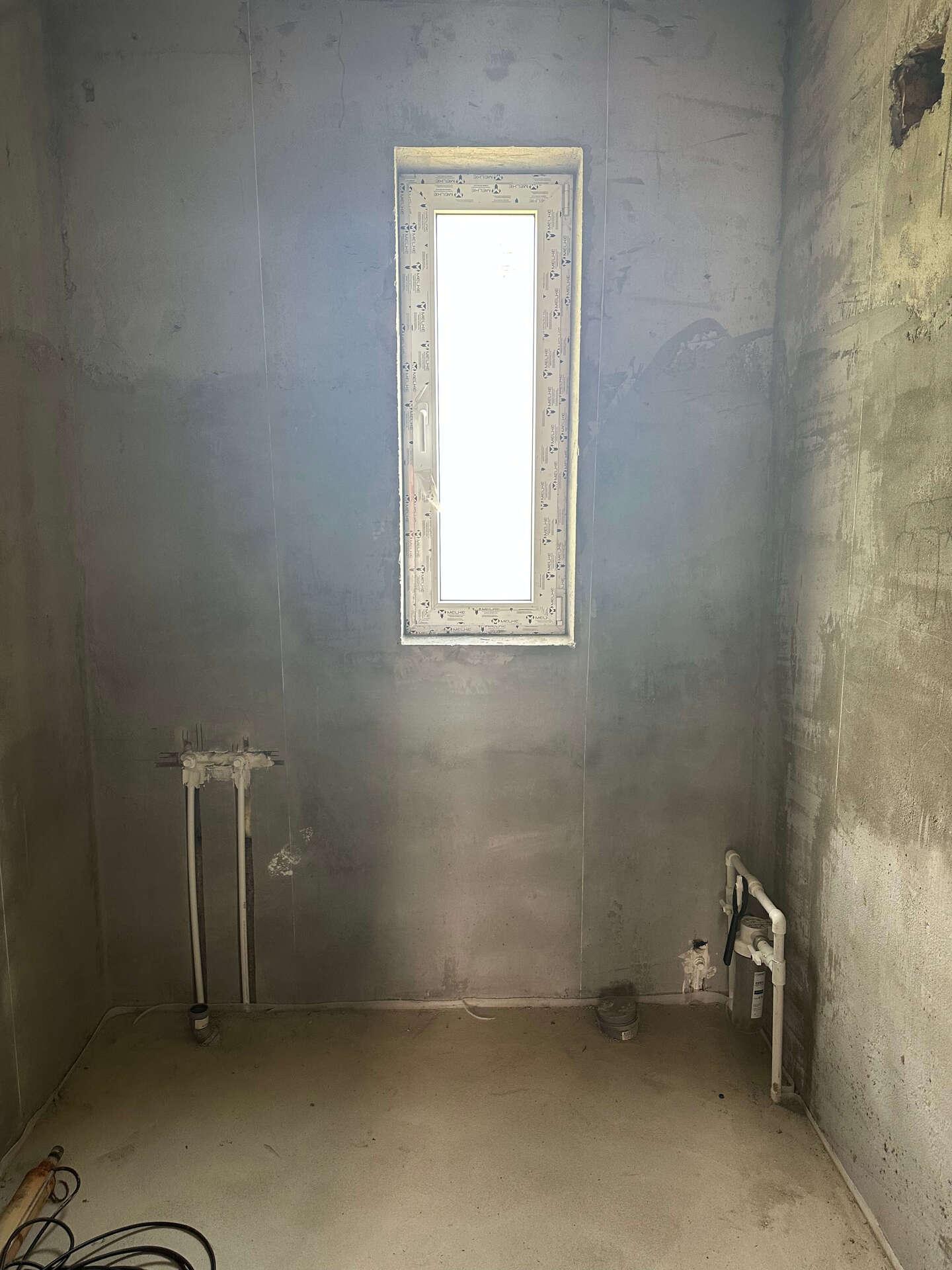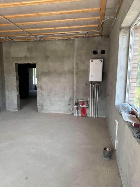 В дальнейшем в доме проведено отопление: в 3 комнатах повесили батареи, в кухне-гостиной, в 2 санузлах и прихожей – теплый пол. В двух санузлах и кухне провели водоснабжение и канализацию.