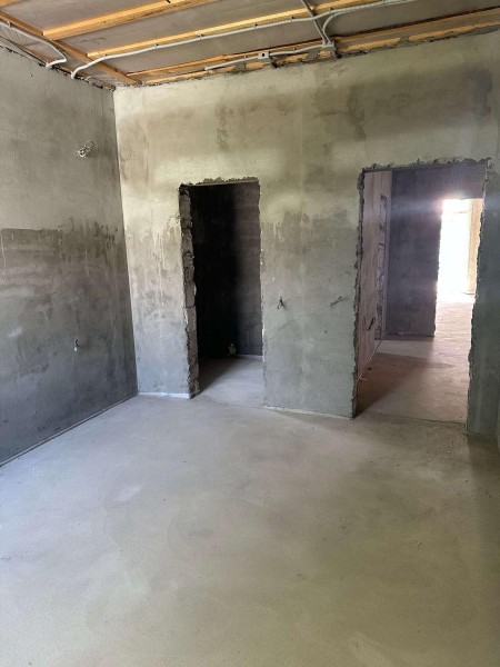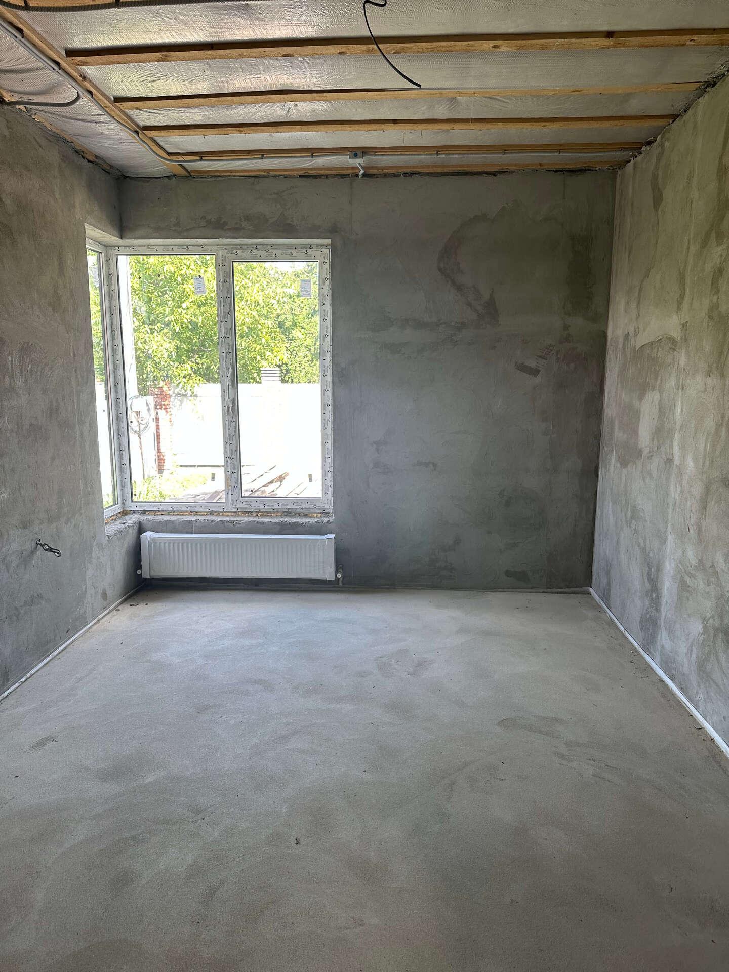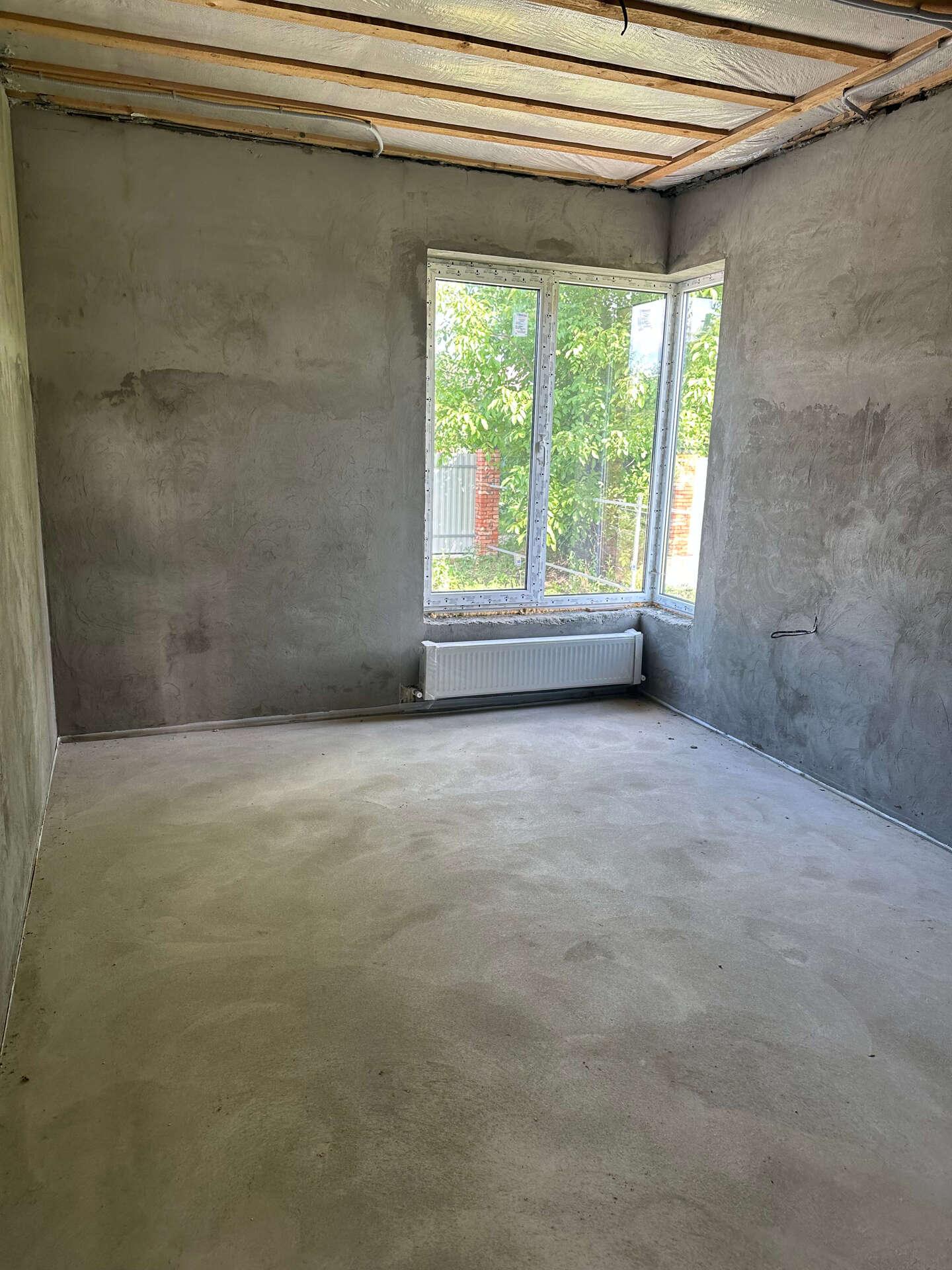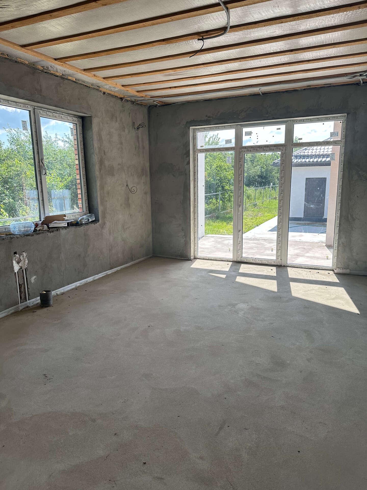 Следующим этапом провели в доме электро-монтажные работы, после чего были поштукатурены внутренние стены на цементно-песчаной основе.