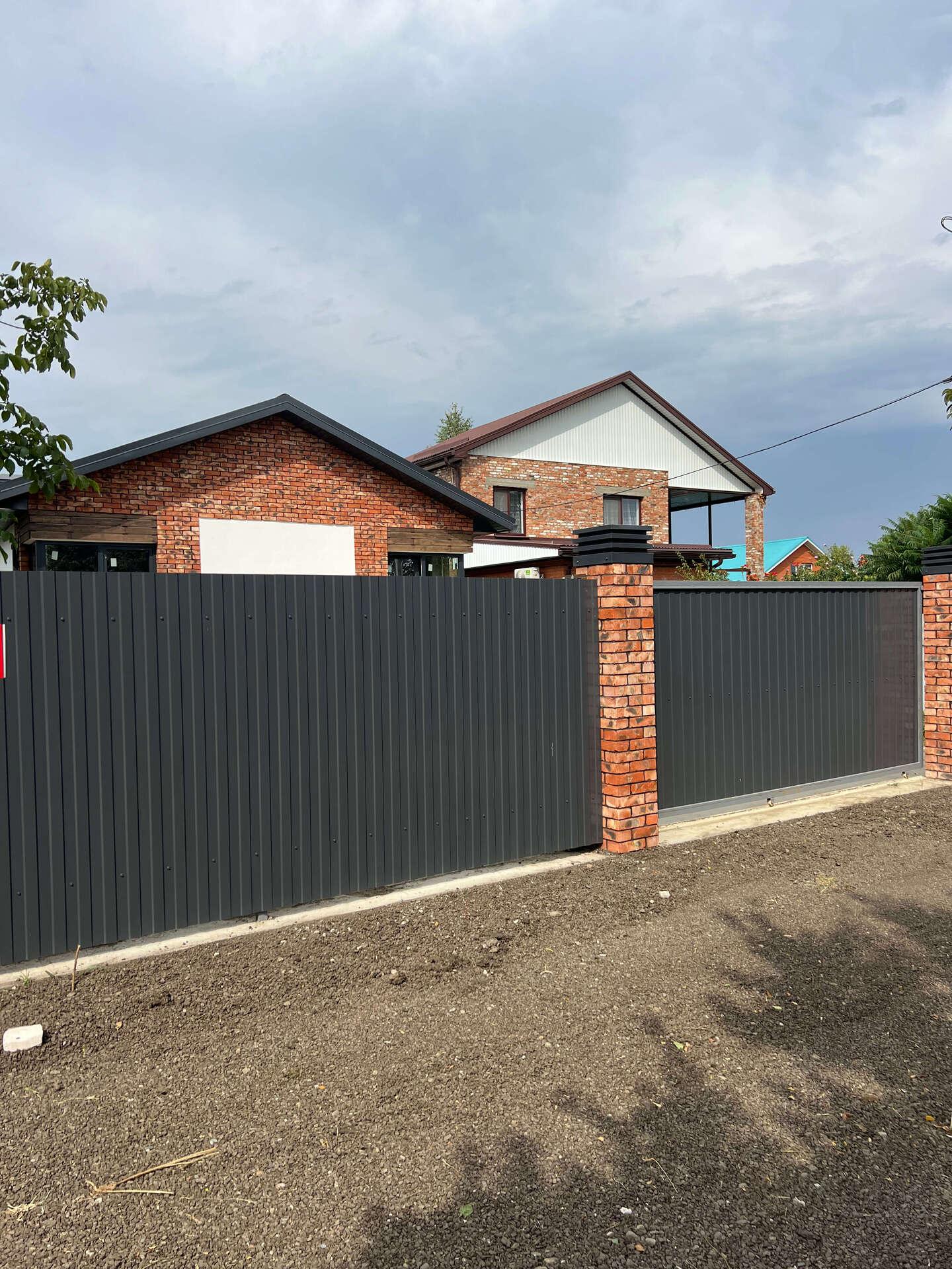 Сделали забор из металлопрофиля с откатными воротами и калиткой