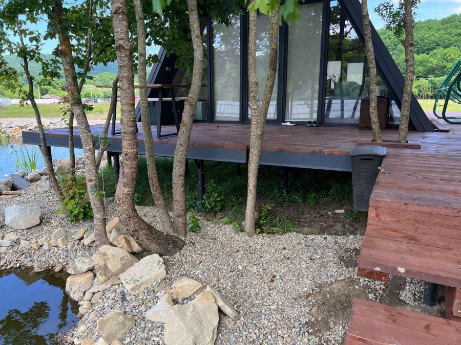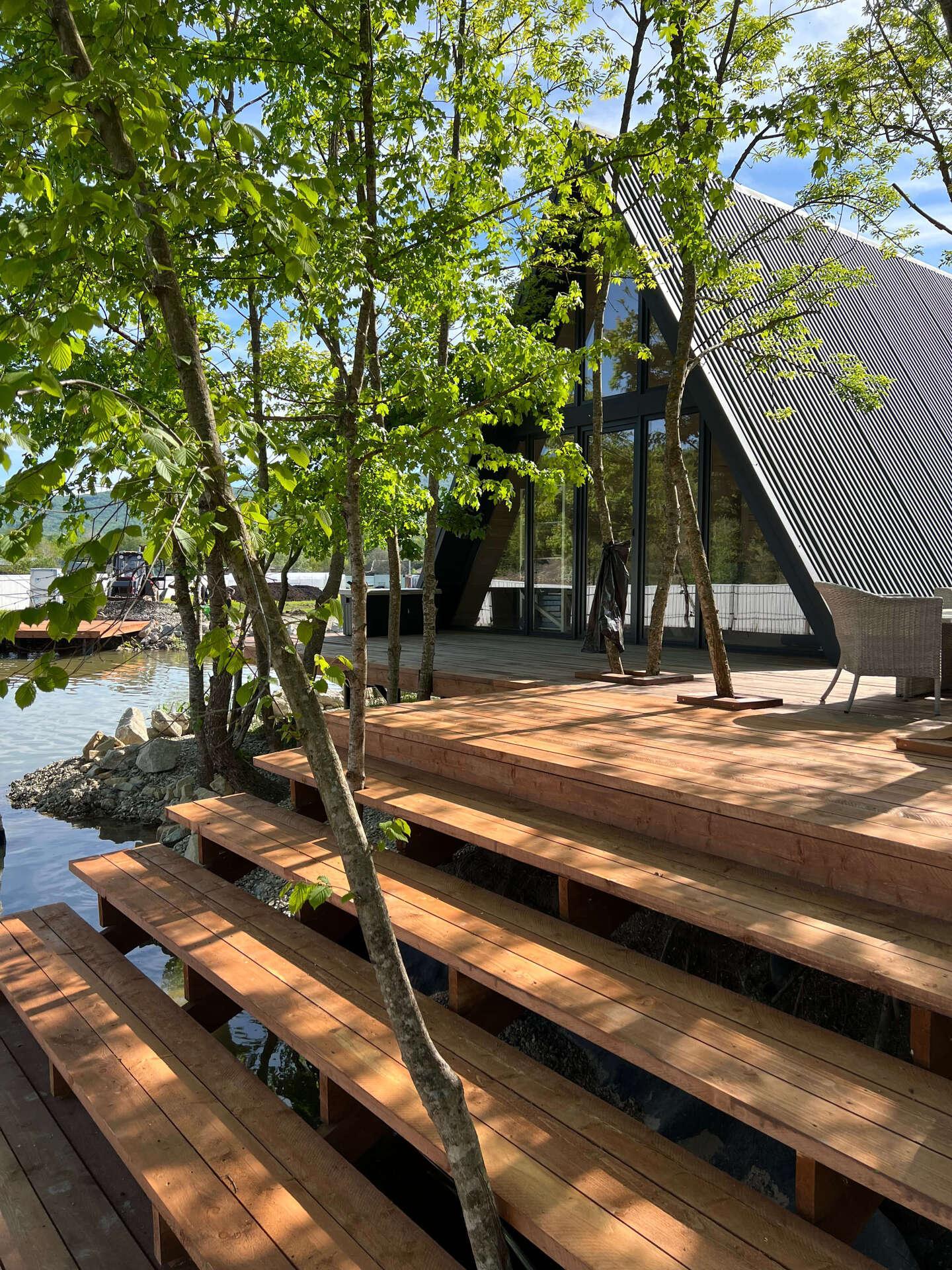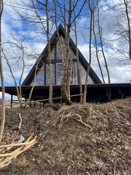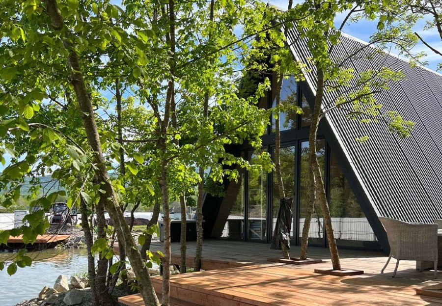 Заказчик хотел построить 4 А-фрейма размером 6м*7м (2 шт) и 6м*8м (2 шт). 2 из них с общей террасой.