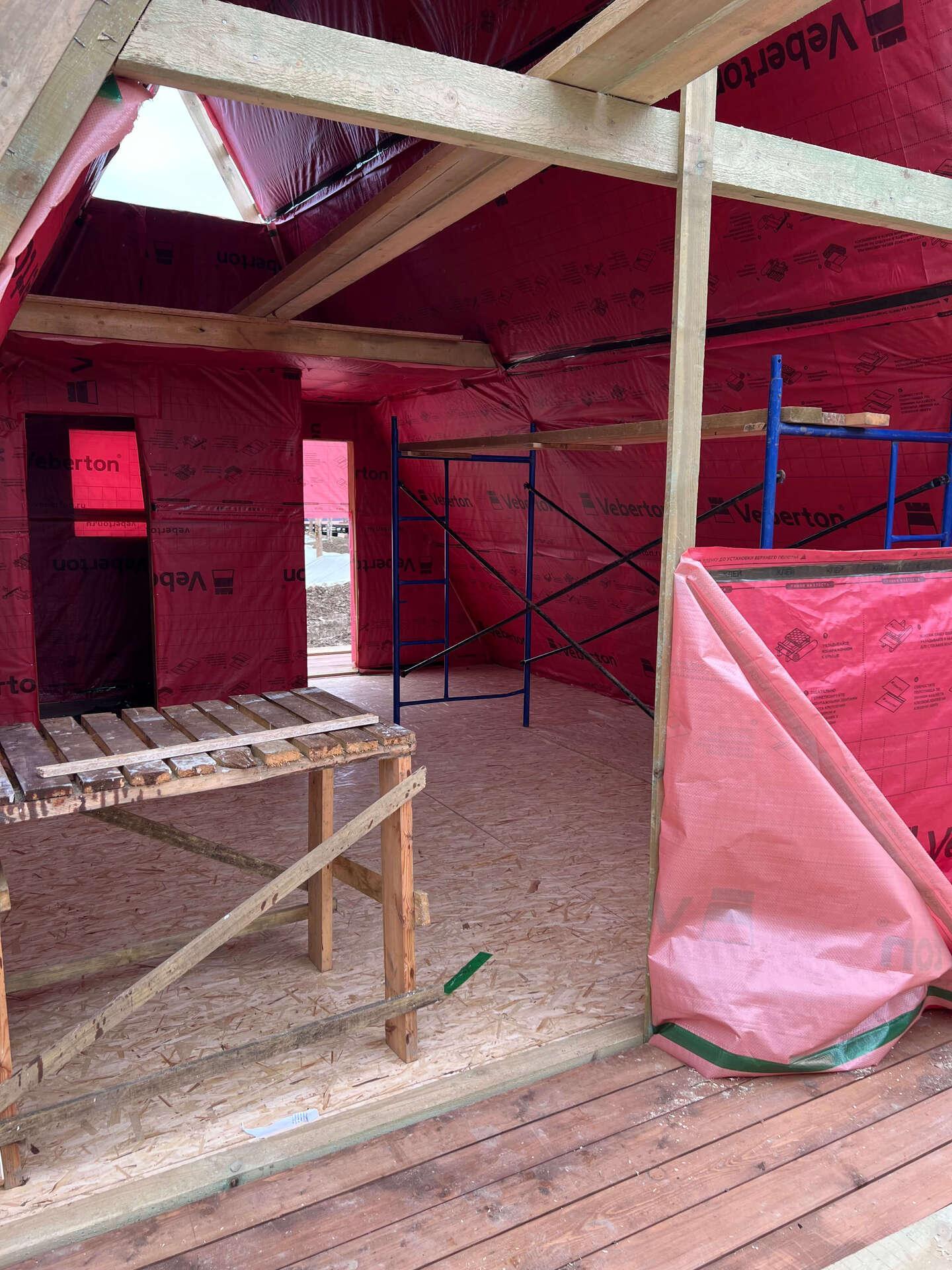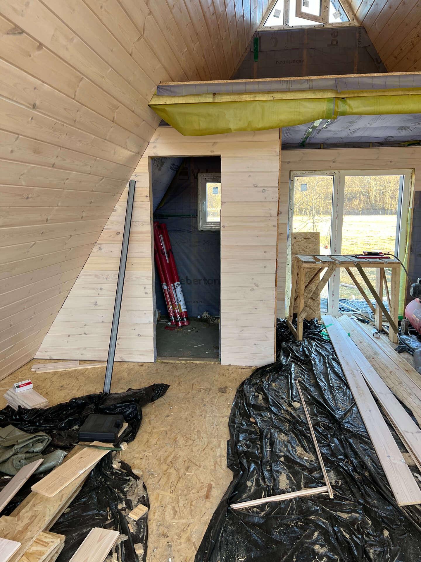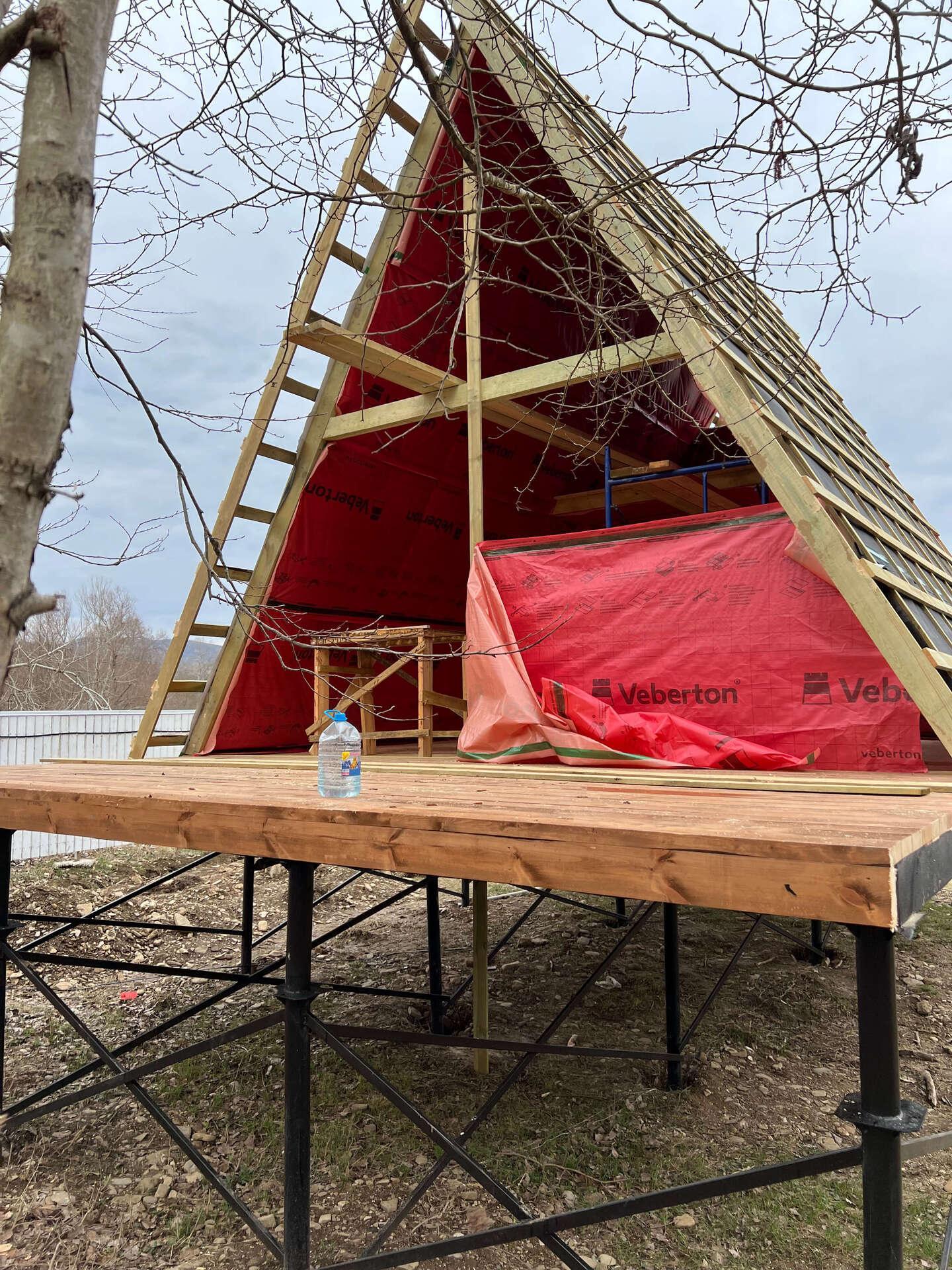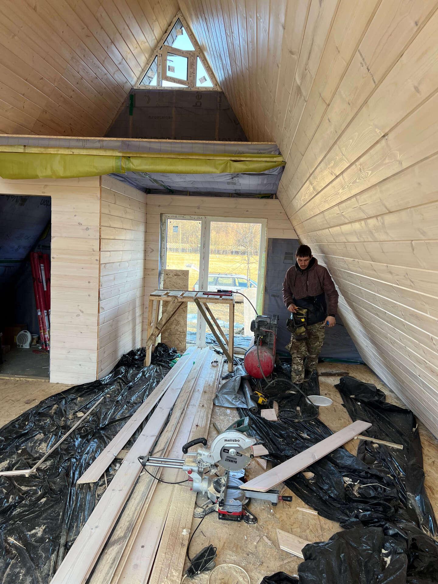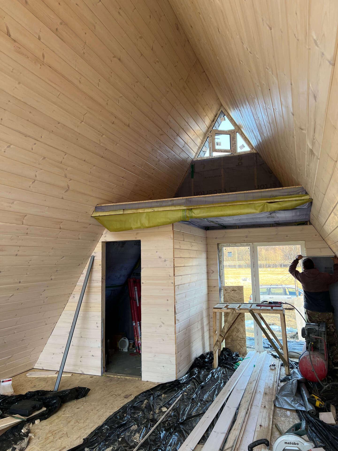 На шестом этапе произвели отделочные работы внутри А-фреймов: