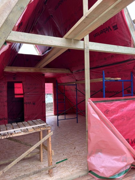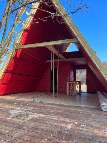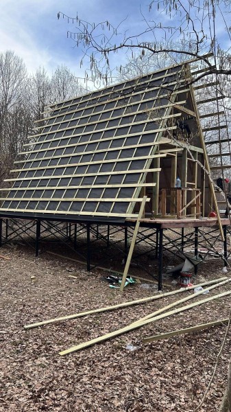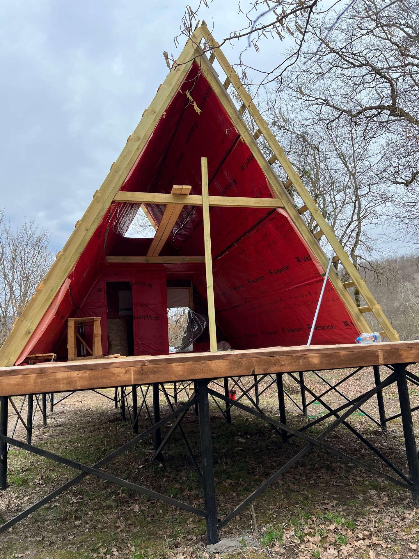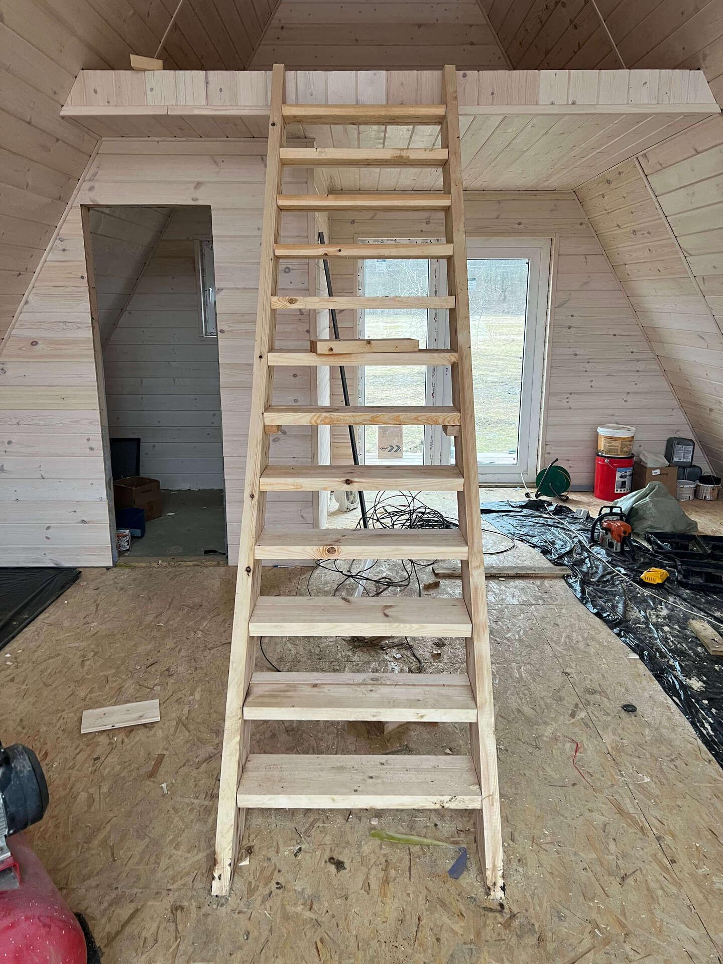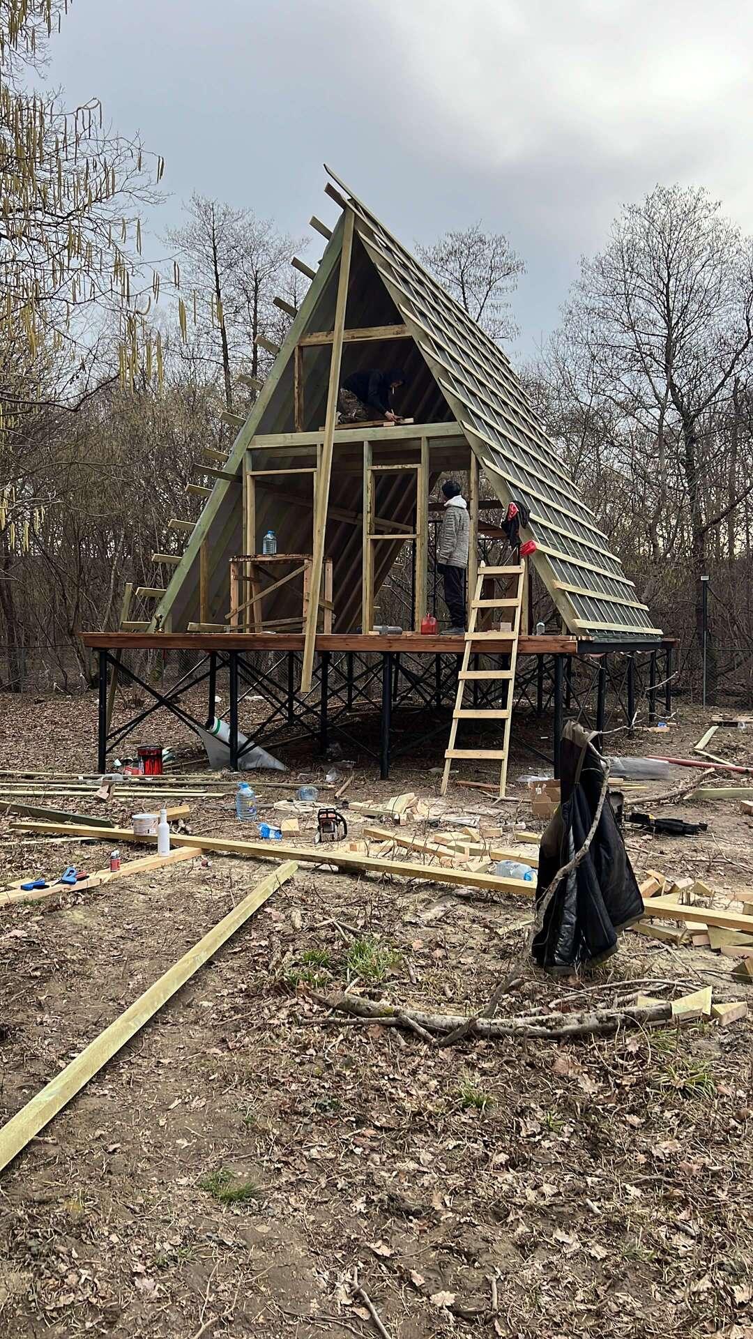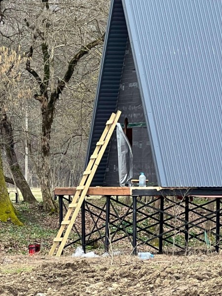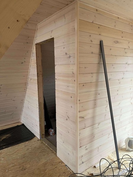 На шестом этапе произвели отделочные работы внутри А-фреймов: