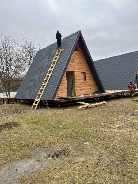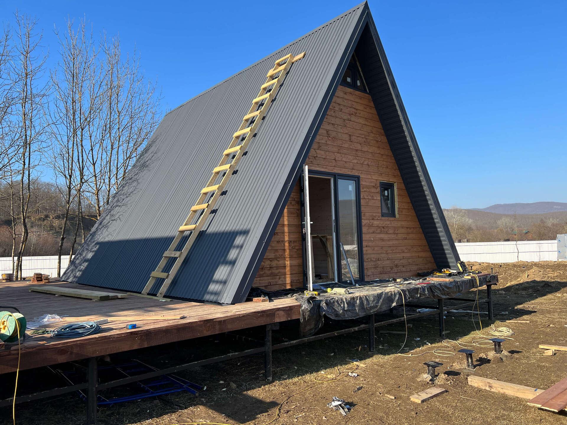 Стоимость работ с материалом (А-фреймы) — 60000 руб/кв.м.