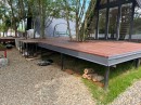 На седьмом этапе уложили террасу окрашенной строганой доской (сосна)
