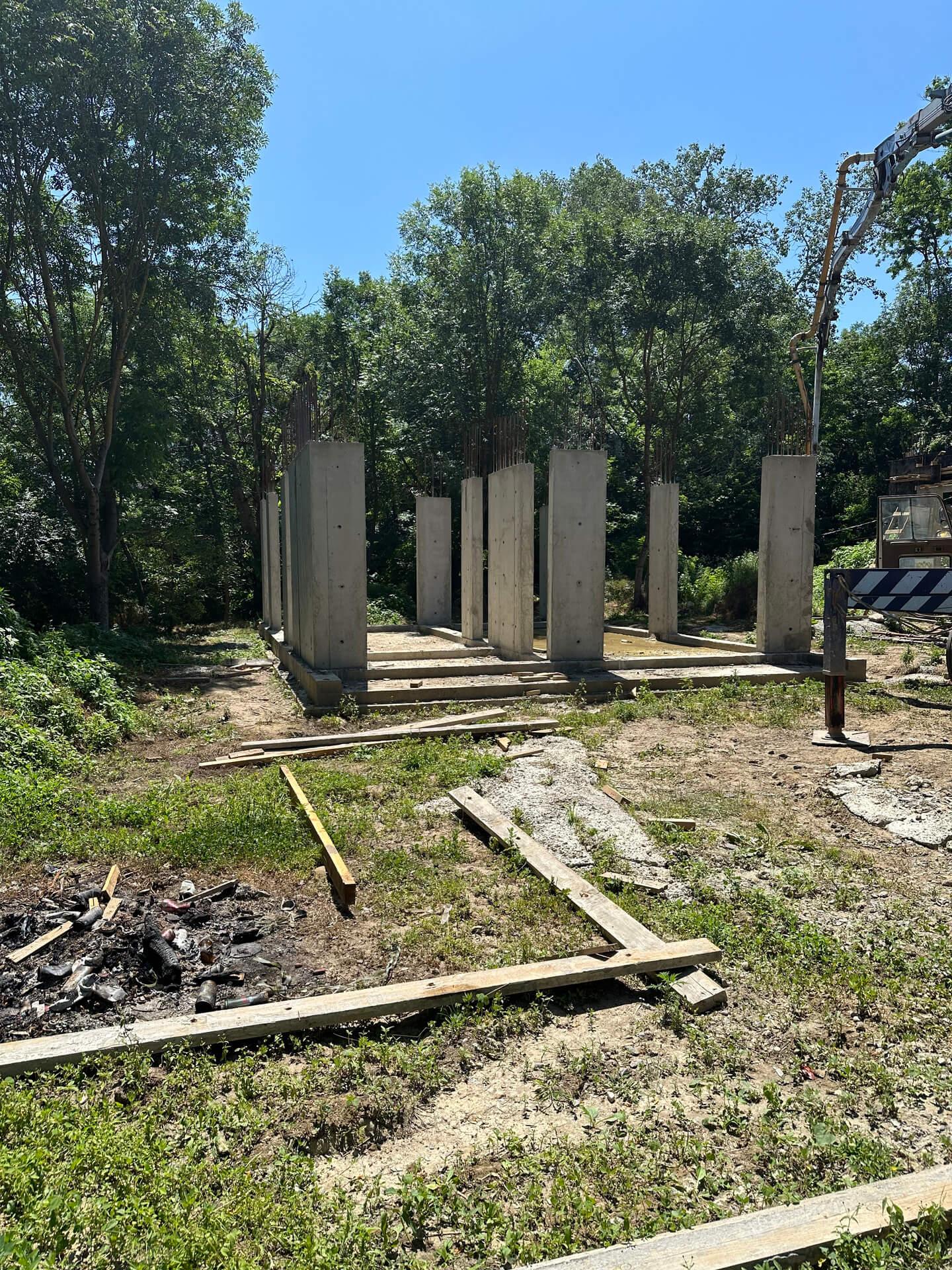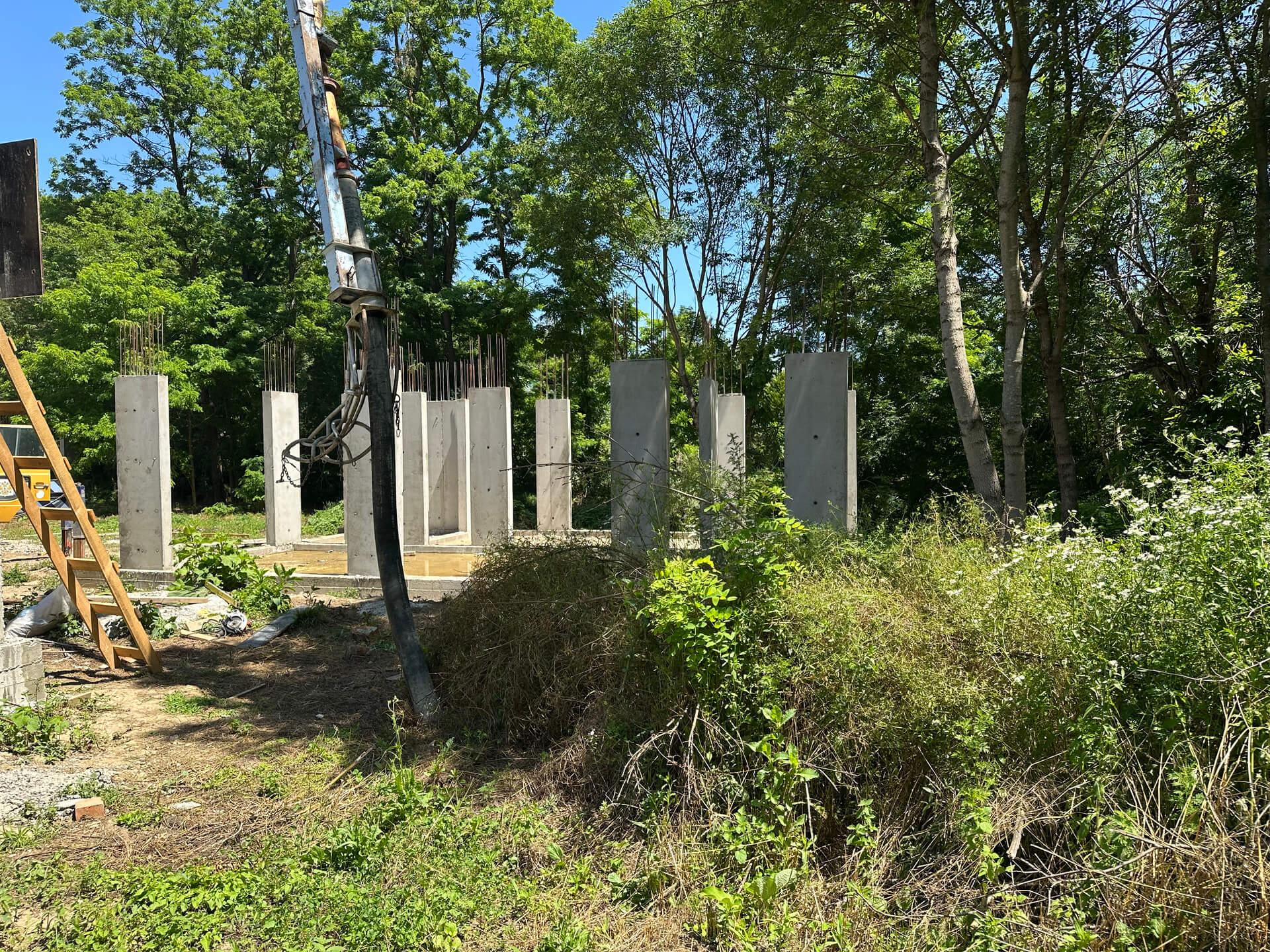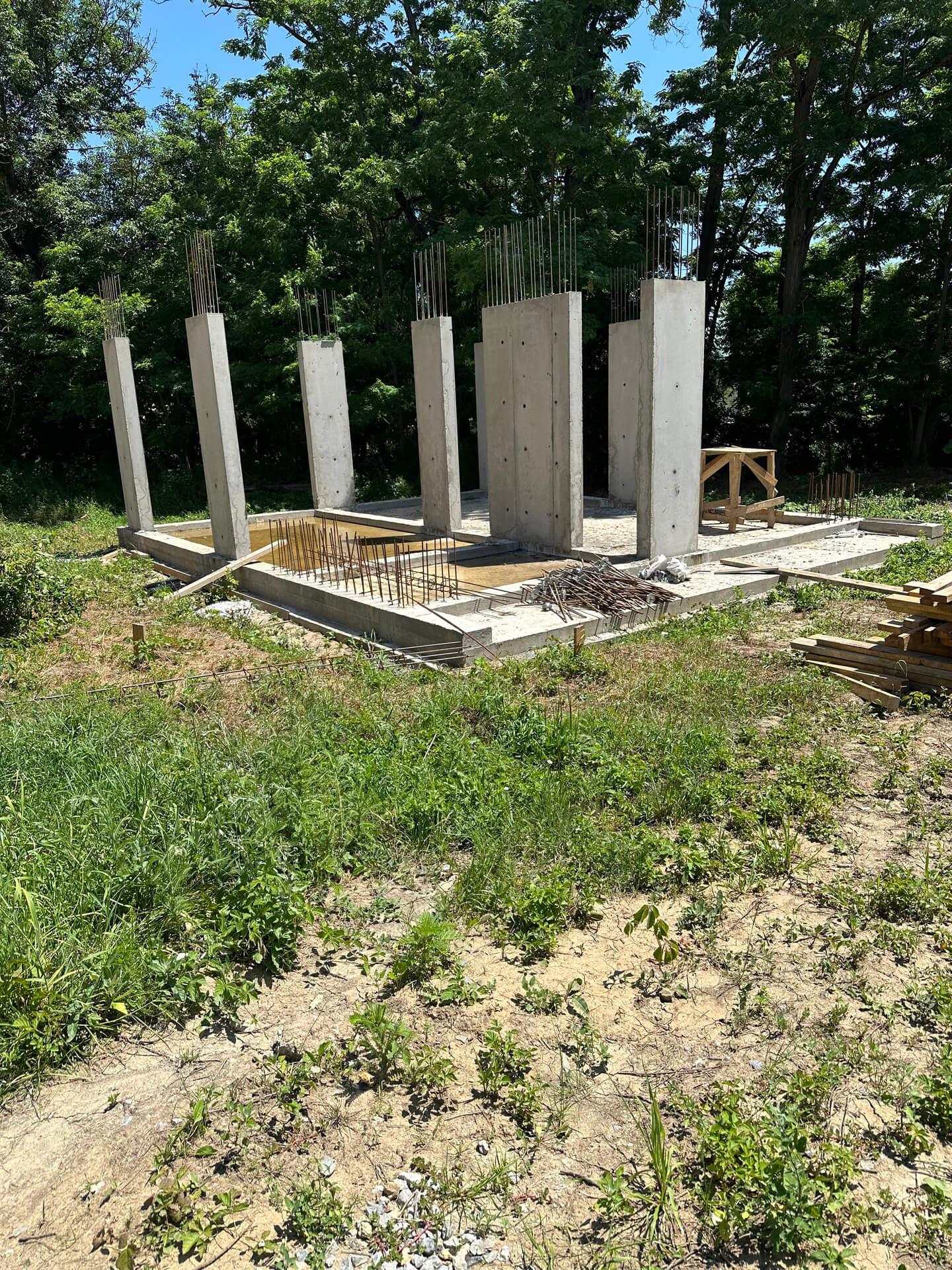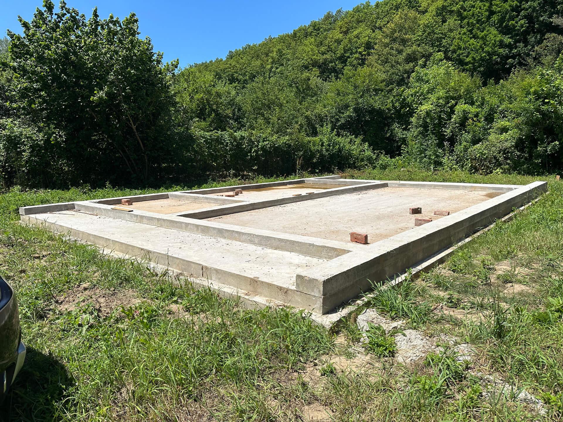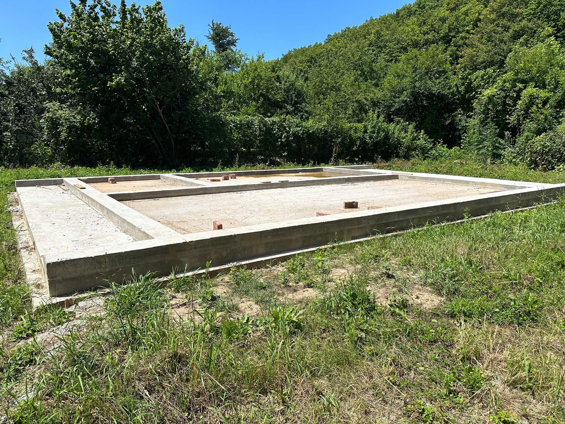 По проекту заказчика на первом этапе были залиты 5 свайно-ростверковых фундаментов с плитой.