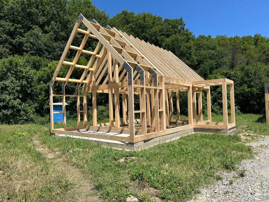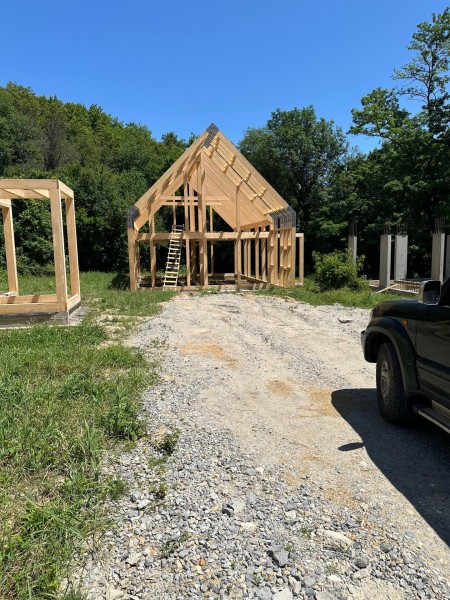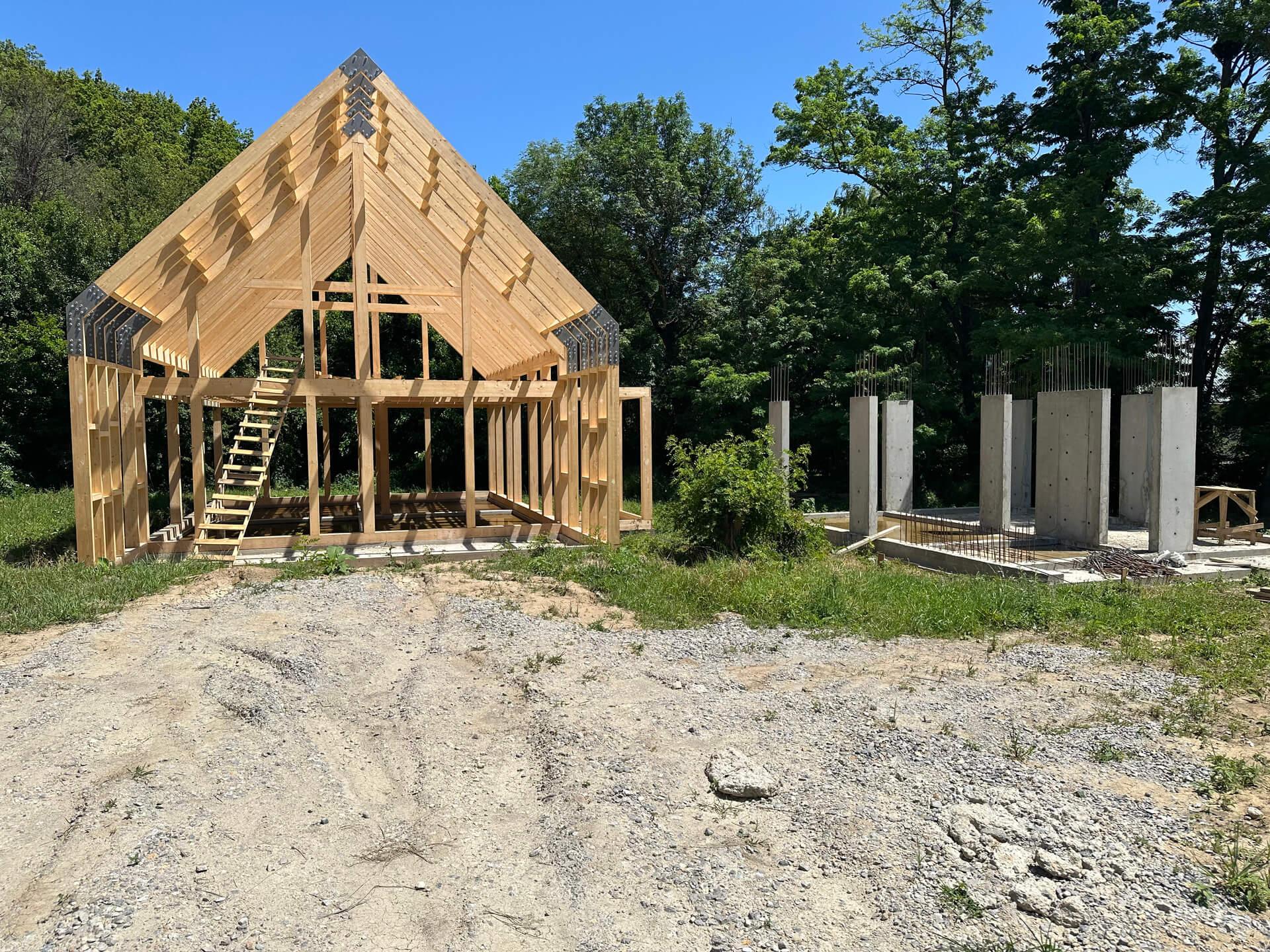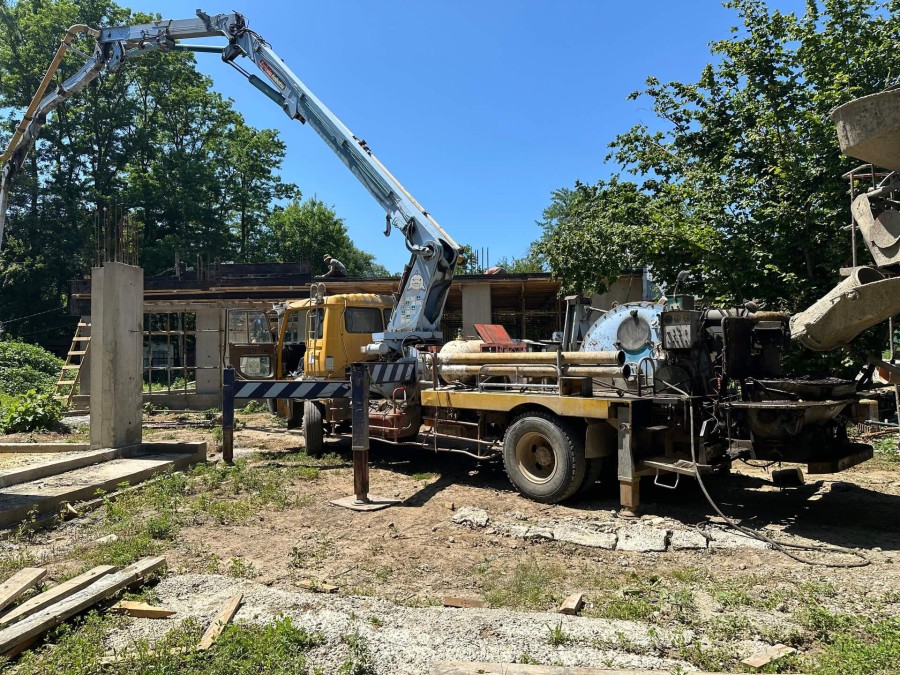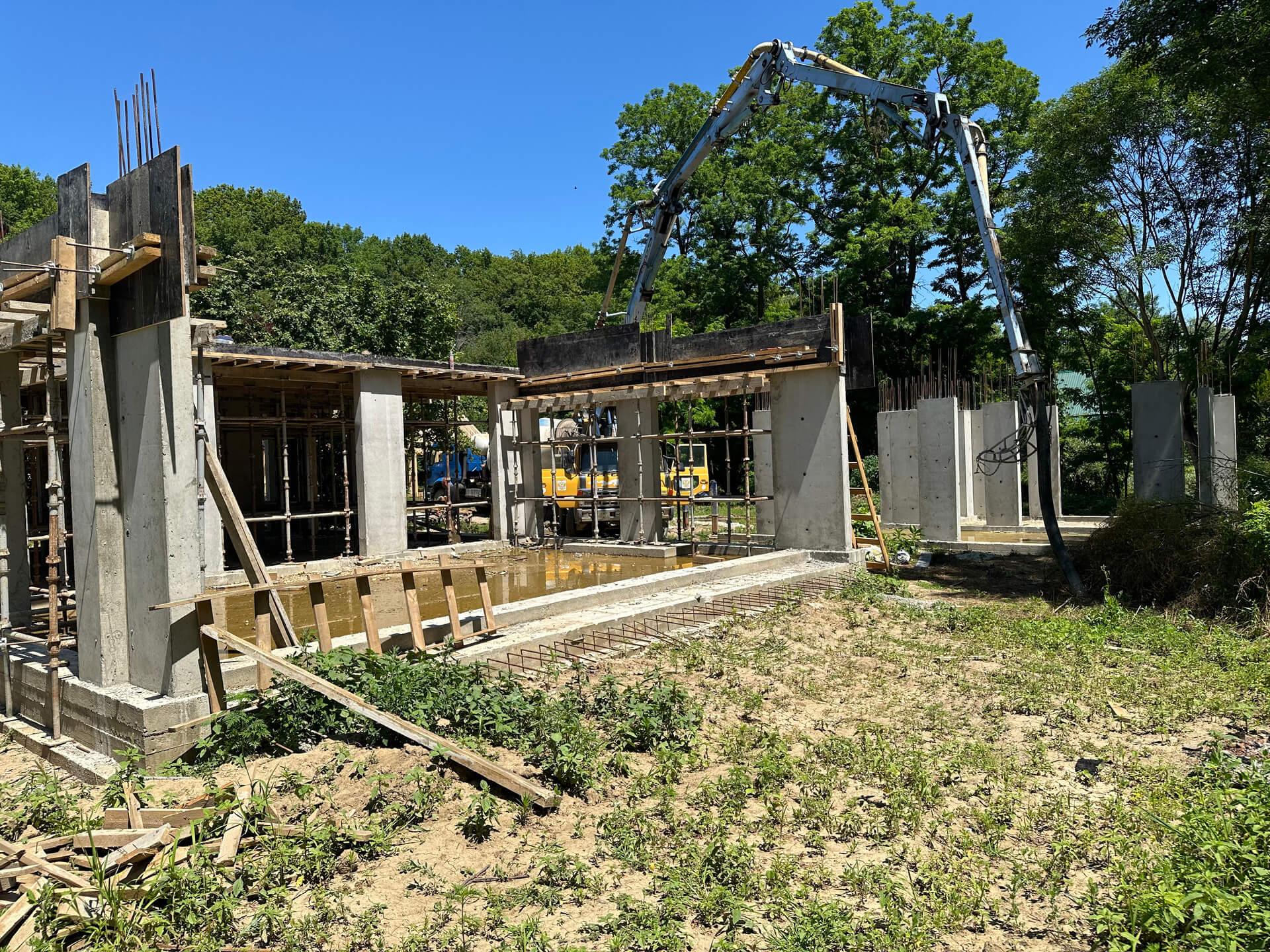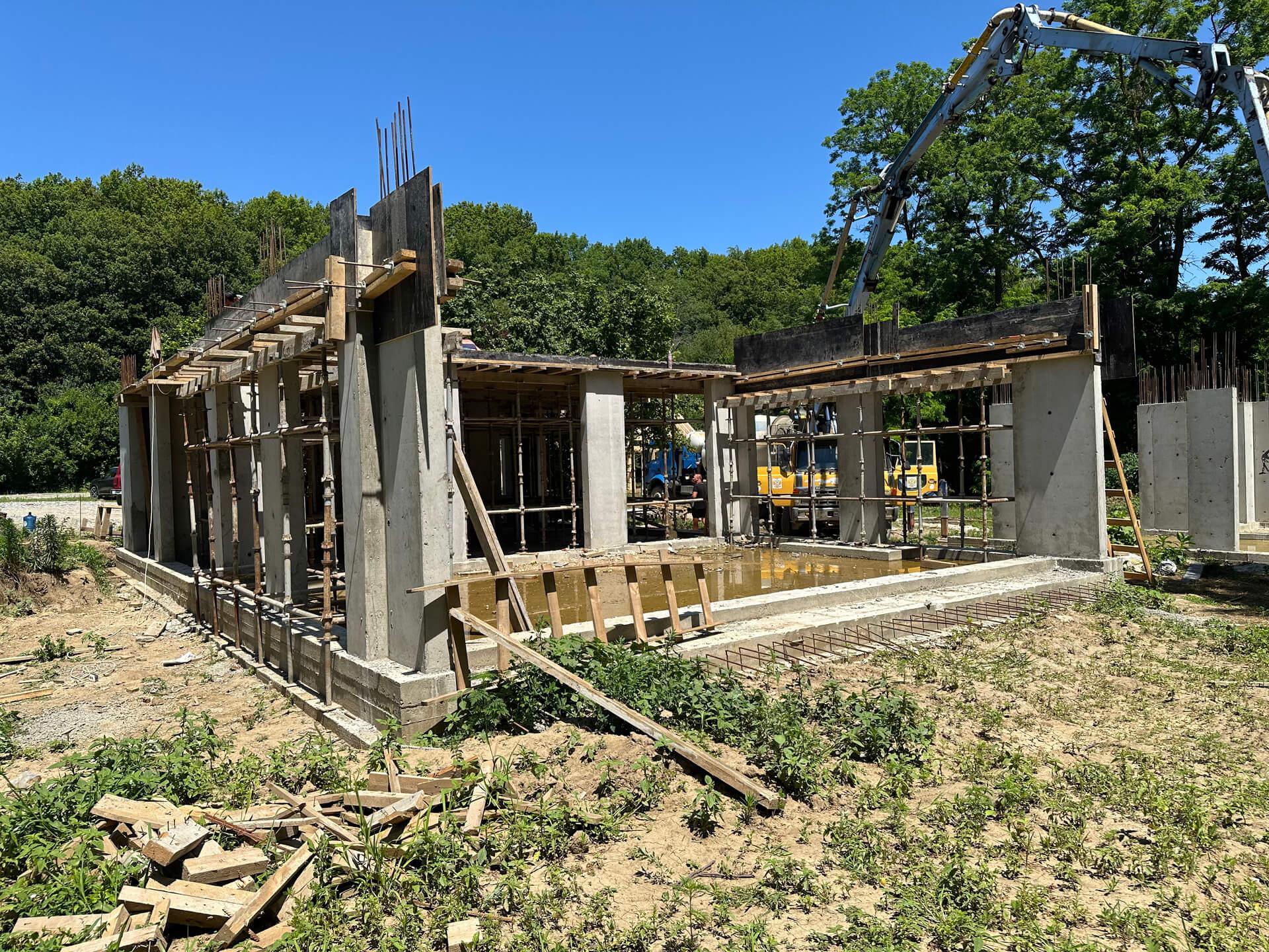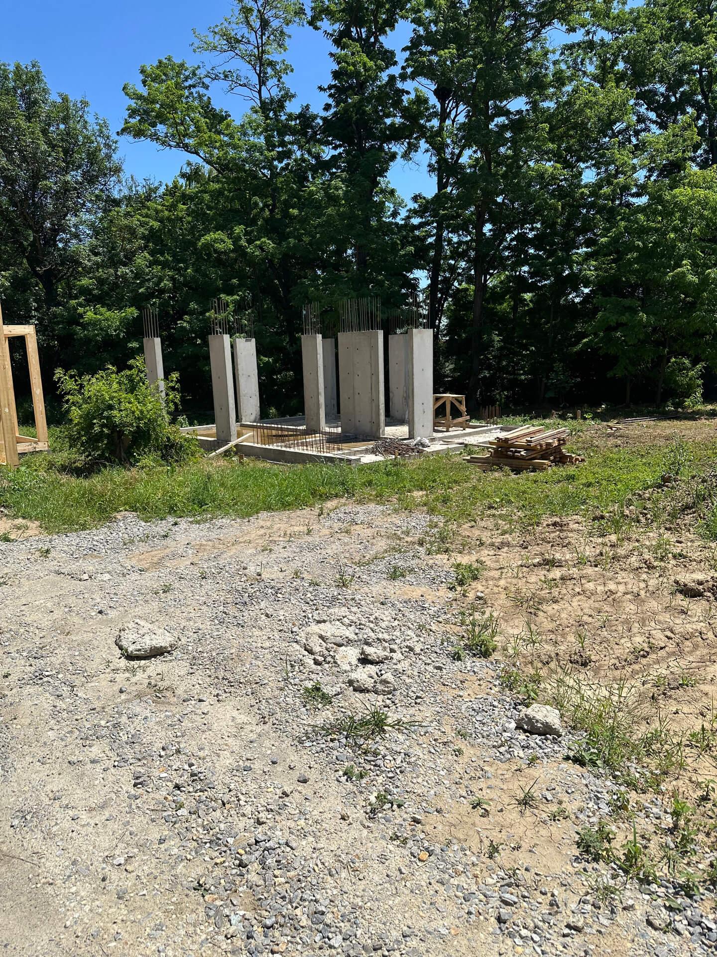 По проекту заказчика на первом этапе были залиты 5 свайно-ростверковых фундаментов с плитой.